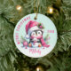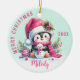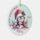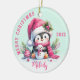 Pink Mint Monogrammed Merry Christmas Cute Penguin Ceramic Ornament