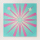 Brighten your world with this playful retro starburst design bursting with mid-century optimism. Vibrant pink rays radiate from a glowing mint-green center, accented by a whimsical pink orb and a shooting cream star trailing across a soft teal background. The bold geometric shapes, smooth gradients, and cheerful color palette evoke joyful energy and vintage charm.