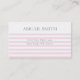 NewParkLane - Faites une impression instantanée avec ces Cartes de visite de classe aux couleurs pastel élégantes, avec un motif moderne et abstrait de rayures rose et blanc doux. L'arrière est recouverte d'une motif rayée verte et blanche à la menthe. Tous les styles de texte, couleurs, tailles peuvent être modifiés selon vos besoins. Consultez la collection pour les articles correspondants. Avez-vous des souhaits particuliers en matière de design personnel? Ou voulez-vous que ce design soit réalisé sur un produit qui ne fait pas partie de cette collection ? N'hésitez pas à me contacter, et je me ferai un plaisir de vous le faire gratuitement !
