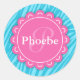 Pink Modern Flower Monogram Aqua Blue Zebra Print Classic Round Sticker
