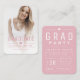 Annonces de graduation de typographie moderne et minimale avec photo, invitation de fête de graduation amusante sur le dos en rose et blanc poussiéreux, Personnalisez-le avec votre propre photo et informations de fête.