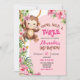 Pink Monkey Young Wild Three Third Birthday Invitation