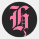 Pick your initial in gothic, Old English lettering in a retro pink and black colour scheme.