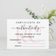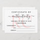 Chic minimalist certificate of authenticity in black and white to which you can add your name or business name. Personalize further with your initials in pale pink. Printed on a 5" x 7" card.