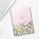 Soft blush background with initial and name above a watercolor wildflower garden creates a feminine personalized floral design. Perfect for women, teens, or girls who love botanical style and elegant custom details for school, work, or journalling.