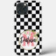 pink Monogrammed Flower black and white Chequered Case-Mate iPhone Case