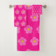 Pink Moss Rose Flower Seamless Pattern on Bath Towel Set