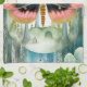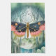 A delicate Pink and brown moth against the background of a blue and green mysterious forest.