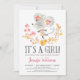 It's a Girl! Cute pink mouse baby shower invitation. Watercolor background and striped back.