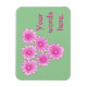 Decorative design of pink mums with yellow centres, with a placeholder for your text, is printed on custom magnets. The text can easily be customized on the template form. The background is light green and can be customized to any colour of your selection. There are matching items in this store. Thank you for shopping at CherylsArt on Zazzle.