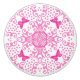 A lacy pink butterfly medallion on a white background is the design featured on this ceramic knob for use on furniture or kitchen cabinets.