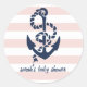 Stickers feature a pale blush pink and white striped background with a classic navy anchor illustration and your choice of text. Coordinates with our Anchors Aweigh, A Little Girl's on Her Way! collection of nautical baby shower invitations and accessories. Check our shop for tons of coordinating items and additional colours!