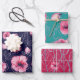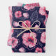 Pink watercolor flowers on navi blue and red background Wrapping Paper Flat Sheet Set of 3.