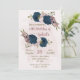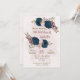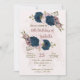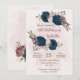 Beautiful romantic birthday party invitation featuring navy blue pink flowers and some pretty leaves .