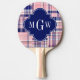 Pink, Navy Blue Preppy Patchwork Madras Monogram Ping Pong Paddle
