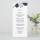 beautiful pink and navy blue flowers and elegant leaves botanical wedding menu.