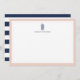 Our chic personalized stationery flat cards feature a pastel blush pink border, a small vintage style pineapple illustration in navy blue, and your name, monogram or choice of personalization. Cards reverse to wide navy and white stripes for a preppy chic look.