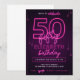 Pink Neon 50th Birthday Party Let's Glow Crazy Invitation