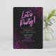 Personalize the editable text, and use the design for a fun dinner party. Design features glow like neon pink lights and pink text, on a black background with sparkle like details. Perfect design for many occasions!