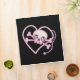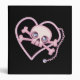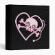 This cute pink skull and crossbones is set upon a heart with a pink neon background.