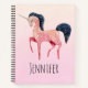 Spiral notebook with a Nordic vibe. A beautiful dainty unicorn with black flowing mane and tale. White flower doodles drawn all over its body.
