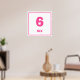 Pink number six on white background with pink border. Help your little one learn the numbers with this number six design.