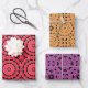Set of three wrapping paper sheets with different patterns. Each pattern features a seamless geometric pattern in moroccan mosaic style.
