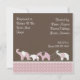 Playful pink elephants line up to welcome friends and family to a baby shower in hon or of the new Mom. There is plenty of room to add resitration and hostess information on the back too.
