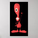 Pink One-Eyed Cyclops Cute Monster Waving Poster