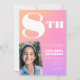 Pink orange 8th birthday invitations for her Retro Photo gradient