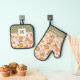 Pink & Orange Flower Garden Pattern Oven Mitt & Pot Holder Set