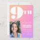 Pink Orange Gradient 9th birthday invitation Photo