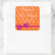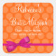 Pink Orange Polka Dot Printed Bow Bat Mitzvah Square Sticker