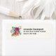 Address labels with a flower arrangement containing pretty pink, orange and white roses surrounded by green leaves.