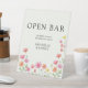 Pink Orange Wildflower Wedding Open Bar Pedestal Sign