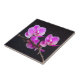 Tile with photo of pink moth orchid (phalaenopsis) flowers against a black background.