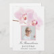 Remember your loved one and celebrate their life with the elegant and simple Pink Orchid Flowers on White Funeral Memorial Service Program. This classy custom flowery death tribute service timeline features a serene and sophisticated floral photograph of pretty light pink phalaenopsis orchid flower blossoms on the stem with a white background. Customize it with a picture of the deceased, birth and death dates and order of ceremony of their celebration of life church service.