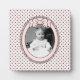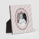 Adorable pink frame with a "lacy" border around it and a pretty pink bow on top, with a background pattern behind the frame design of black polka dots. Personalize this by changing the photo out with your own.