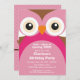 Cute pink owl birthday party invitation.