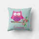 Pink Owl on a Branch Personalized Throw Pillow