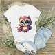 A cute pink owl with big eyes holds a flower, adding charm and a splash of colour.