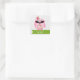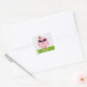 A sticker featuring an illustration of a pink owl with patchwork belly. Owl is wearing pink sunglasses and a pink rose on its head. Personalize with your name and address.