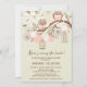 Fun and whimsical bridal shower invitation featuring pink and brown owls, flowers and birdcages. Other colours are available.