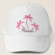 Cute Hawaii baseball cap with pink palm trees and some sparkle and glitter effect in the design. The template area can be personalized with your favourite tropical destination.