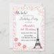Invitation d'anniversaire avec thème parisien et combinaison de couleurs roses.