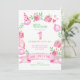 Pink Party Girl's First Birthday Invitation. Pink first birthday invitation with watercolor Florals, hearts and Balloons 1st First Birthday design