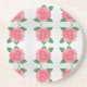 Customizable Sandstone Coaster with pink rose design.