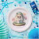 Paper plates with an adorable image with a round shaped bunny standing outside it's egg-shaped house. Pastel colours and cherry trees give it a Japanese kawaii vibe