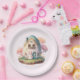 Pink Pastel Bunny Rabbit & House Paper Plate