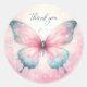 Pink Pastel Glitter Butterfly - Thank you - Classic Round Sticker